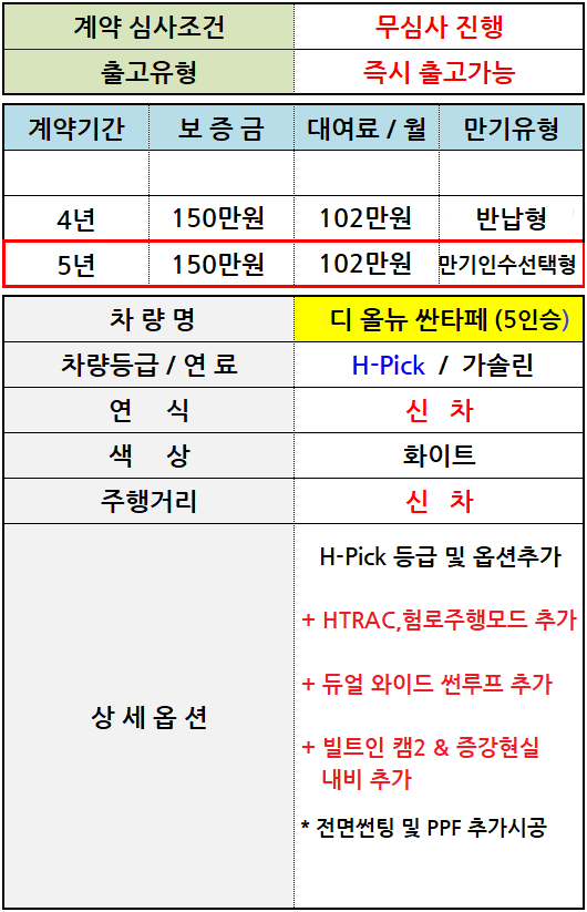[신차] 싼타페_H-Pic_AWD / 월 102만원