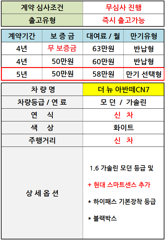 [신차] 더 뉴 아반떼CN7_가솔린 / 월 58만원
