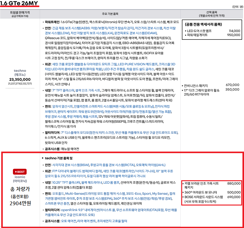 ▶사양: 1.6GTe 아이코닉 사양 및