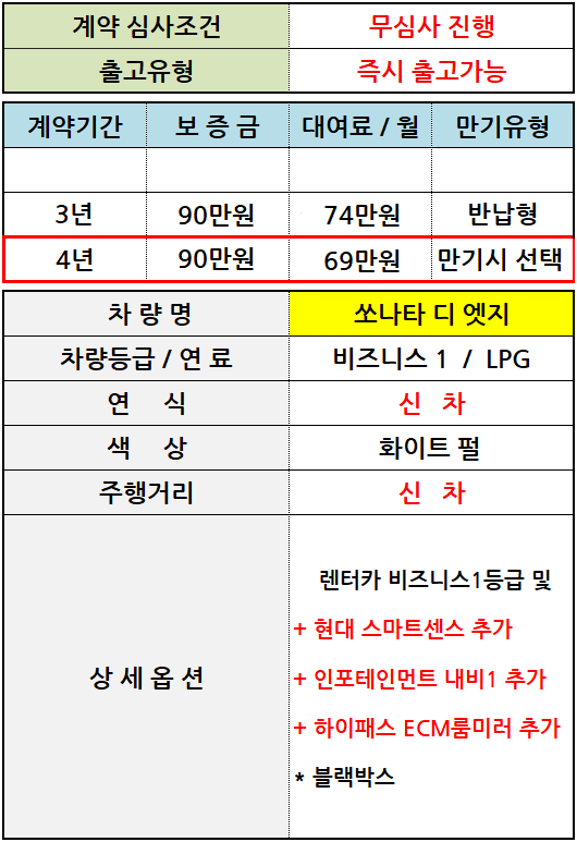 [신차] 쏘나타 디 엣지 B1_LPG / 월 69만원