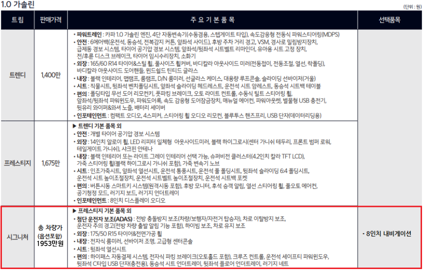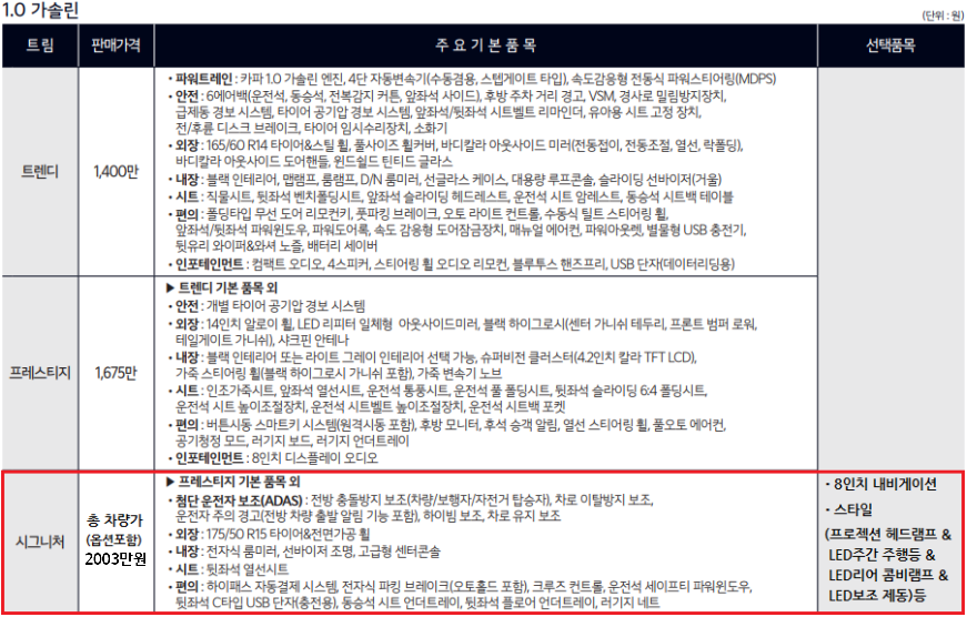 ▶옵션: 프레스티지 등급 및 옵션 추가