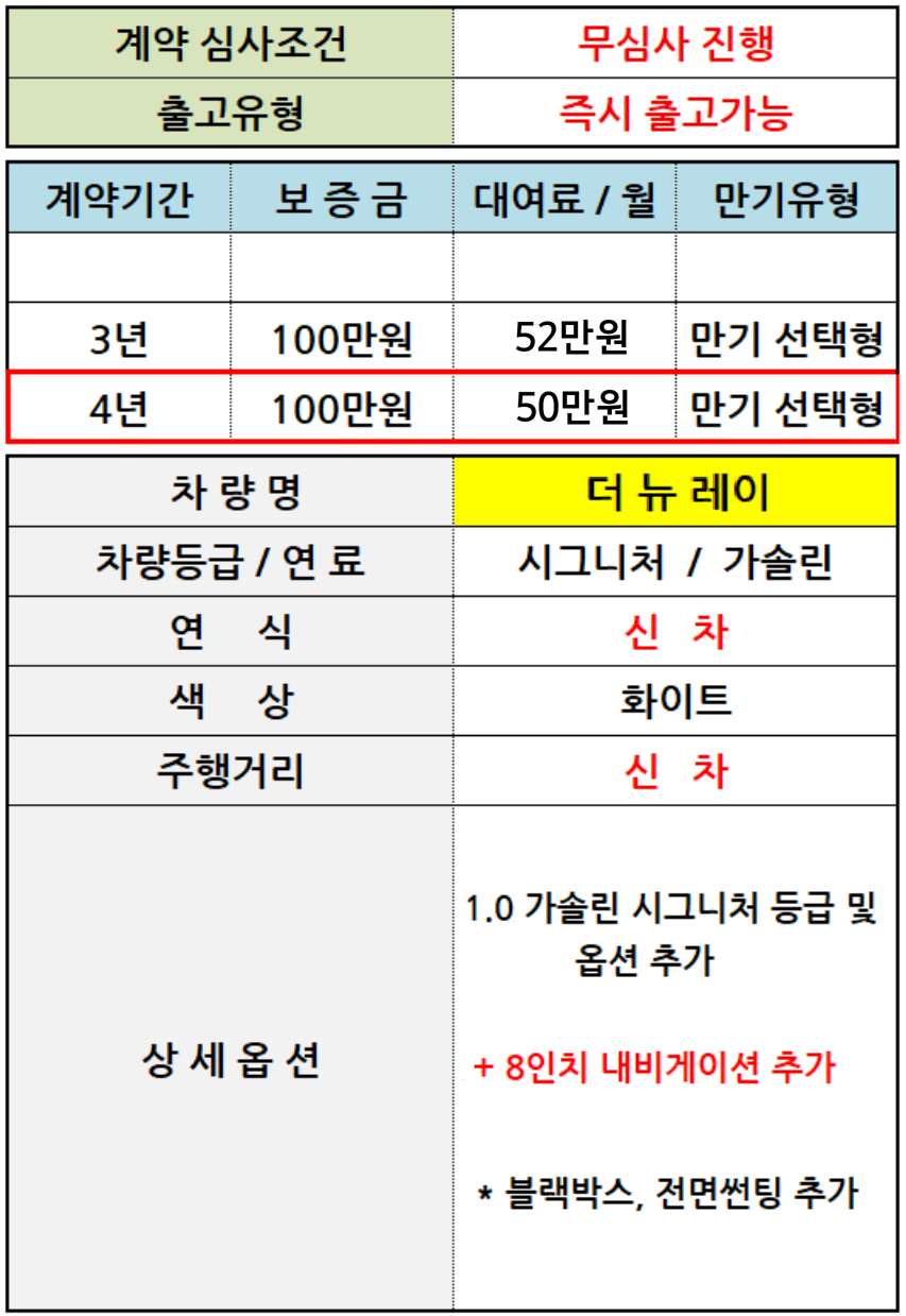 [신차] 더 뉴 레이_시그니처 / 월 50만원