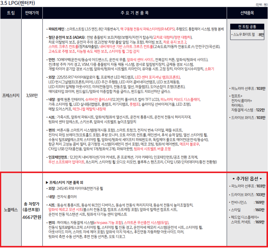 ▶추가옵션: 3.5 LPG 노블레스 등급 및