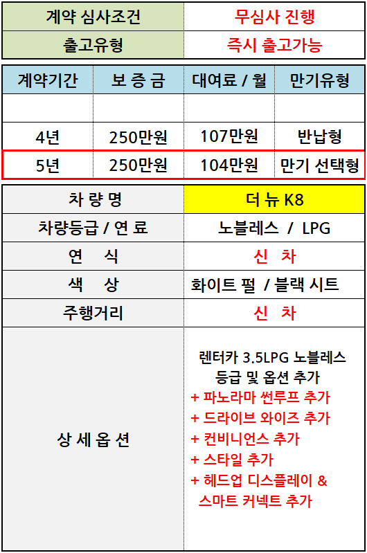 [신차] 더 뉴 K8 고사양_LPG / 월 104만원