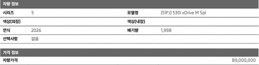 ▶옵션: BMW 530i xdrive M Spt 사양
