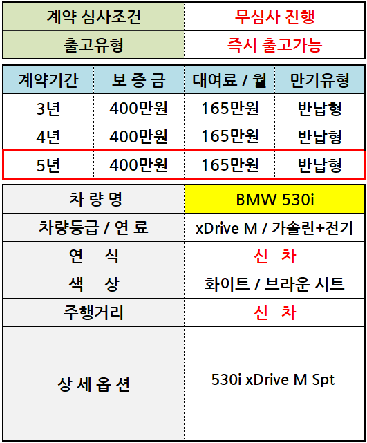 [신차] BMW 530i xDrive M / 월 165만원