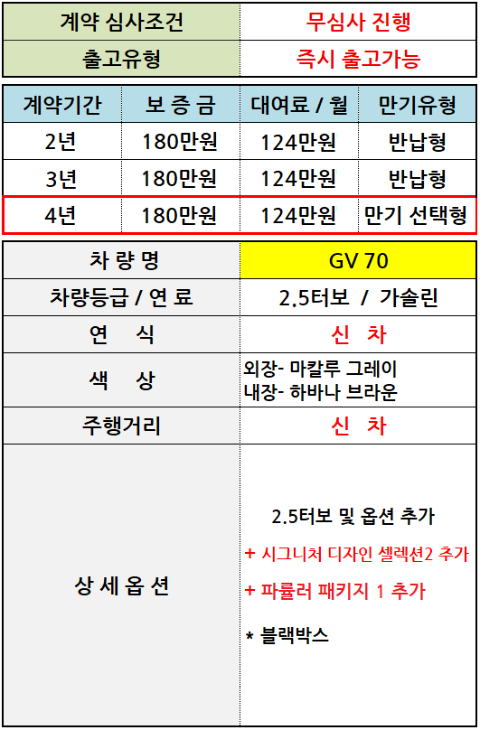 [신차] GV70_SDS2+파퓰러팩 / 월 124만원